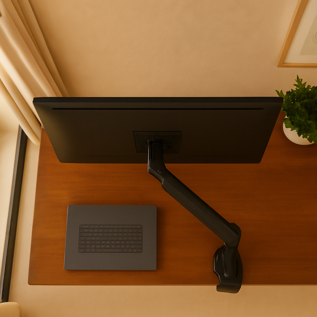 Le support d’écran Harmis est conçu pour votre espace de travail. Robuste et réglable, il vous permet de positionner votre moniteur comme vous le souhaitez, pour un usage tout au long de la journée.